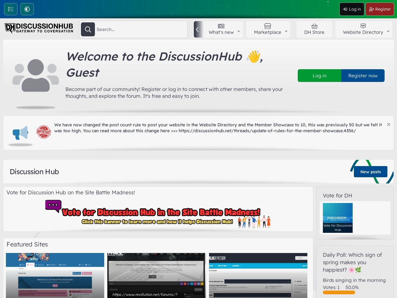 Forum Promotion - Best Webmaster, Admin and Internet Marketing Forum Virtual Streams Rock Club Another Admin Forum Discussion Bucks The Coffee House Virtual Pet List ★ Off Topix – Active & friendly forum ★ Discussion Hub Bayside Gamers